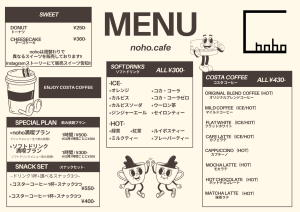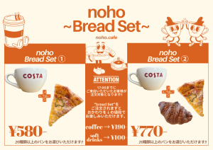nohoカフェでは、英国発の本格ブランド「コスタコーヒー」をお楽しみいただけます。深いコクと香りが魅力のコーヒーは、リラックスしたい時や気分を切り替えたい時にぴったり。落ち着いた店内にはフリーWi-Fiも完備しており、お仕事や勉強にも最適です。お一人様からご友人、ご家族とのひとときまで、さまざまなシーンでご利用いただける心地よい空間をご用意しています。